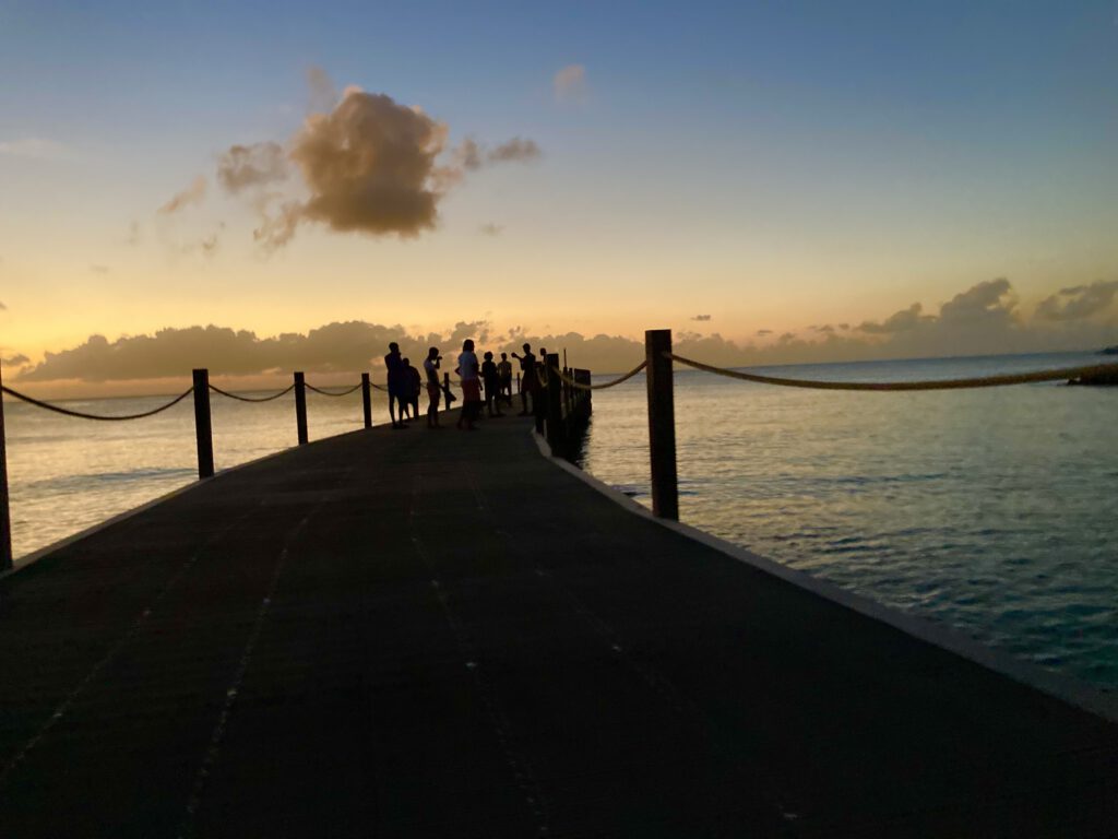 In vielen kleinen Begegnungen lernen wir einiges über das Leben hier. Die meisten Menschen sind keine Bajans (so nennt man Barbados-Ureinwohner) sondern kommen aus Ghana und führen hier ein einfaches, aber leichtes Leben. Das was man zum ernähren braucht wird im Garten angepflanzt, was übrig ist vom Mangobaum wird mit der Nachbarin geteilt, die gerade eine Brotfrucht übrig hat und so weiter. So funktioniert das Leben hier. Einen Gang zum Supermarkt kann sich auch kaum einer leisten. Die Preise sind echt unglaublich hoch, auch wir leben lieber von unseren Vorräten an Bord als viel einzukaufen. Die Restaurants sind für die reichen amerikanischen und englischen Touristen und die reichen Bajans. Die Insel lebte mal vom Zuckerrohr und dem Rum daraus, wofür eine ganze Menge Urwald abgeholzt wurde. Später war der Tourismus die Einnahmequelle Nummer eins. Und das Corona demzufolge tiefe Einschnitte hinterlassen hat, kann man sich vorstellen. So langsam kehren die Kreuzfahrtschiffe wieder zurück in den Hafen von Bridgetown. Ein Grund warum wir nicht dort vor Anker liegen.