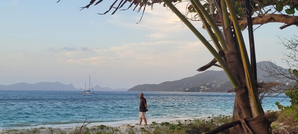 Am nächsten Tag werden die müden Knochen beim schwimmen und Schnorcheln geschont und wir genießen das herrliche Panorama auf diesem unberührten, grünen Flecken Erde. Grenada, unser nächstes Ziel in der Zivilisation, ist in der Ferne schon zu sehen. Ein Katzensprung, aber wir haben keine Termine und fahren erst weiter, wenn wir Lust haben. So hab ich mir die Karibik-Segel-Auszeit vorgestellt. Jeder Sonnenuntergang ist spektakulär, die Nächte mild, das Wasser blau, die Ausblicke grün und jede Insel für sich anders und wunderschön.