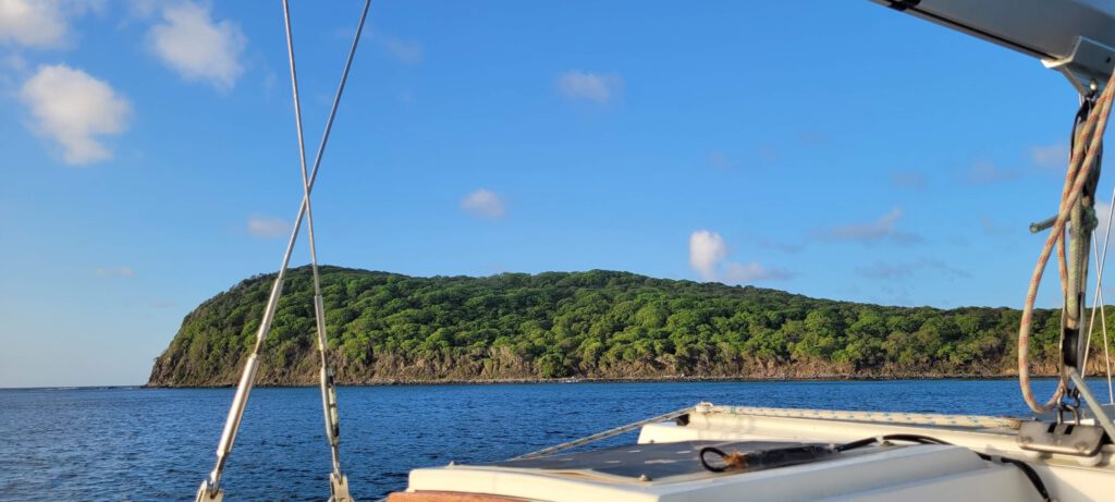 Die Grenadinen sind eine Ansammlung von kleinen Inseln, die meisten gehören zu “St. Vincent & die Grenadinen”, wie der Name schon sagt. Ein paar südlich gelegenere gehören zu Grenada. Von Martinique entscheiden wir uns direkt zur ersten Grenadinen-Insel vom Land Grenada zu fahren, um dort einzuklarieren und die Grenada Flagge danach gehisst lassen zu können. Carriacou, Sandy Island, Petit Martinique und Ronde Island heißen die Inseln, vor denen wir ankern. Keine 18 Seemeilen liegen zwischen der nördlichsten und der Südlichsten Insel, trotzdem sind die kurzen Überfahrten immer wieder spannend. Der Weg von Martinique nach Carriacou, 120 Seemeilen, dauert 2 Tage, und das nur weil wir zwischendurch einfach eine gesamte Nacht auf der Stelle stehen.