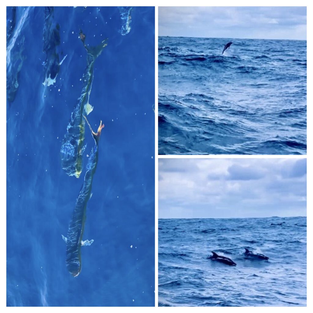 Als Ablenkung gibt es immer mal wieder ein paar Tölpel. Auch ein Pilotwal und Delfine besuchen uns. Und einige Begegnungen: eine Boje mitten auf dem Ozean – verankert. Wie skurril!