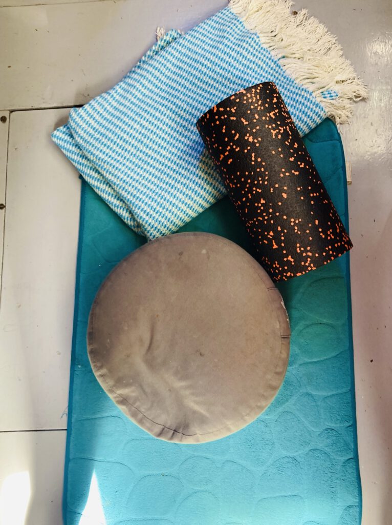 Gegen den Bewegungsmangel funktioniere ich die anderthalb Quadratmeter Holzfussboden im Salon regelmäßig zu einem Yoga- und Sportstudio um. Und ab und zu wird auch die Musik aufgedreht und im Rhythmus der Wellen gesurft.