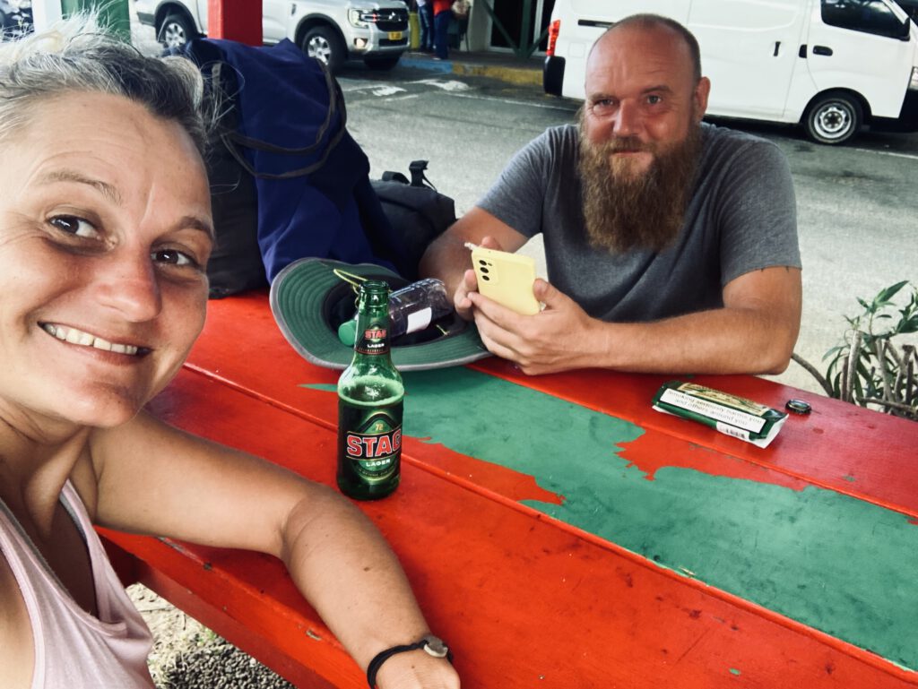 Auch wenn wir Irgendwie das Gefühl nicht loswerden, dass uns die Insel nicht gehen lassen will. Denn unser eigentlich geplanter Abholer vom Boot, hat am Tag zuvor mit Dengue-Fieber flach gelegen. Aber wir sind entspannt und während das Auto an den Straßenrand gefahren wurde und die Fahrerin erstmal ein Bier auf den Schock trinken geht, satteln wir unsere Rucksäcke wieder und steigen in den Bus. Das Angebot des Fahrers, in der verbleibenden Zeit bis zum Abflug noch eine Stadtrundfahrt zu machen, lehnen wir dankend und lachend ab. Wir sind froh am Flughafen zu sein. Und trinken auch erstmal ein letztes lokales Bier auf Grenada, bevor wir uns in das Flughafen-Getümmel stürzen.